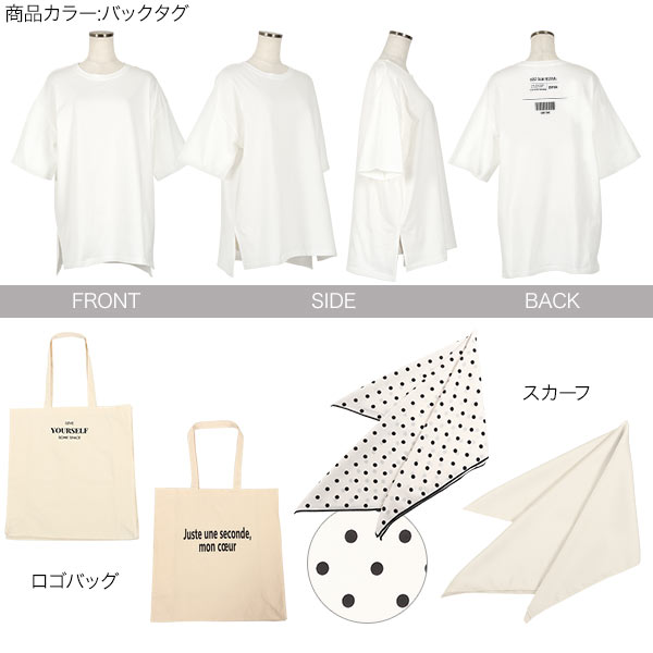 Tシャツ バッグ 【3点SET】ビッグT+キャンバスBag+スカーフ [C4598]【入荷済】 レディース ロゴT フォトT シンプル ドット柄 綿100% 半袖【送料無料】【メール便】