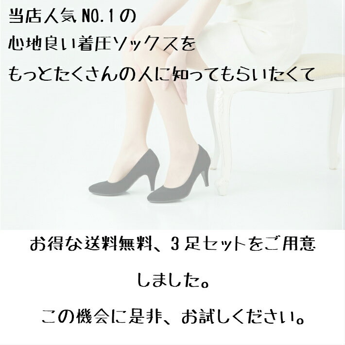【お得な送料無料3足セット】 もっとたくさんの方にe-socksの心地良い着圧ソックスを知って頂きたくてお得な3足セットをご用意しました!! 【ご注意】 送料無料商品と送料別商品を同時にご購入頂きました場合、同梱は出来かねますので、 送料別商品については送料を頂きます。