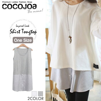 【タンクトップ】pi-18456ストライプシャツデザインタンクトップ☆タンクトップ トップス ストライプ シャツ レイヤード シンプル レディース カジュアル#Free#【RCPfashion】【cocojoa】【JYJ】【P12Jul15】