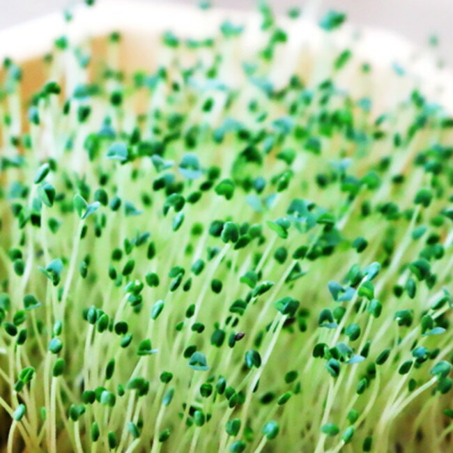 幼植物(スプラウト)をかいわれ大根と同じようにサラダ等に利用します。